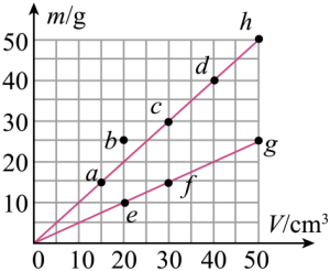 1.小明同学测量了多个不同实心物体(a、b、c、d、e、f、g、h)的质量和体积,并绘制了图像,如图所示.下列说法与图像不相符的是( )