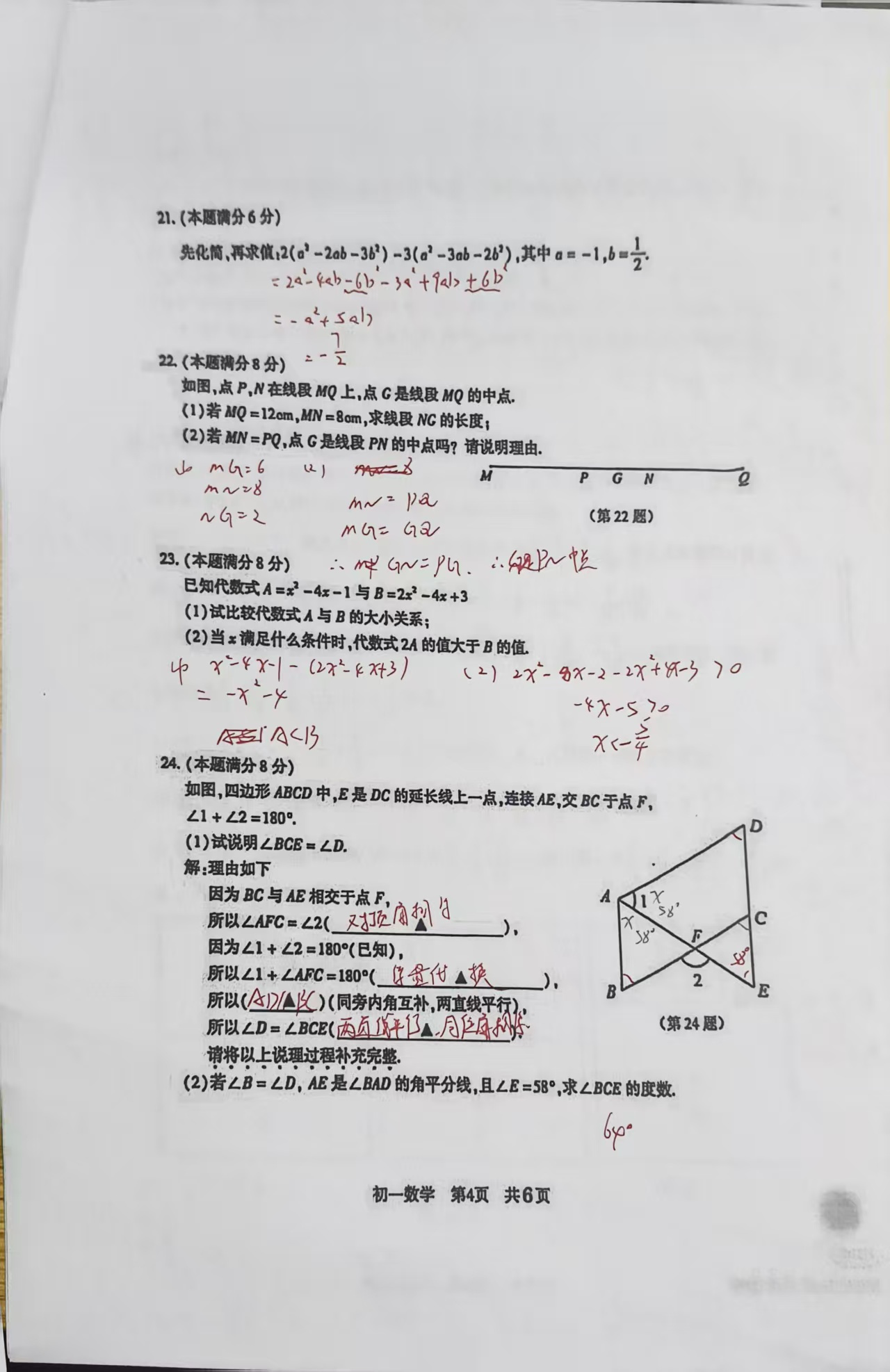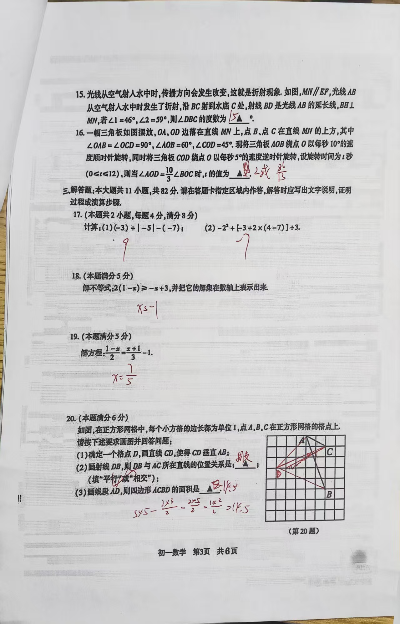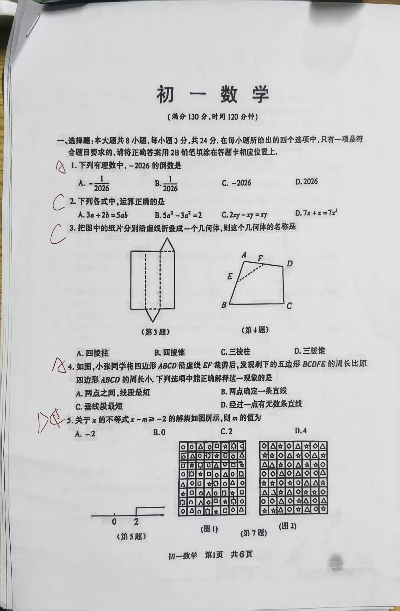 2026初一数学期末试卷答案