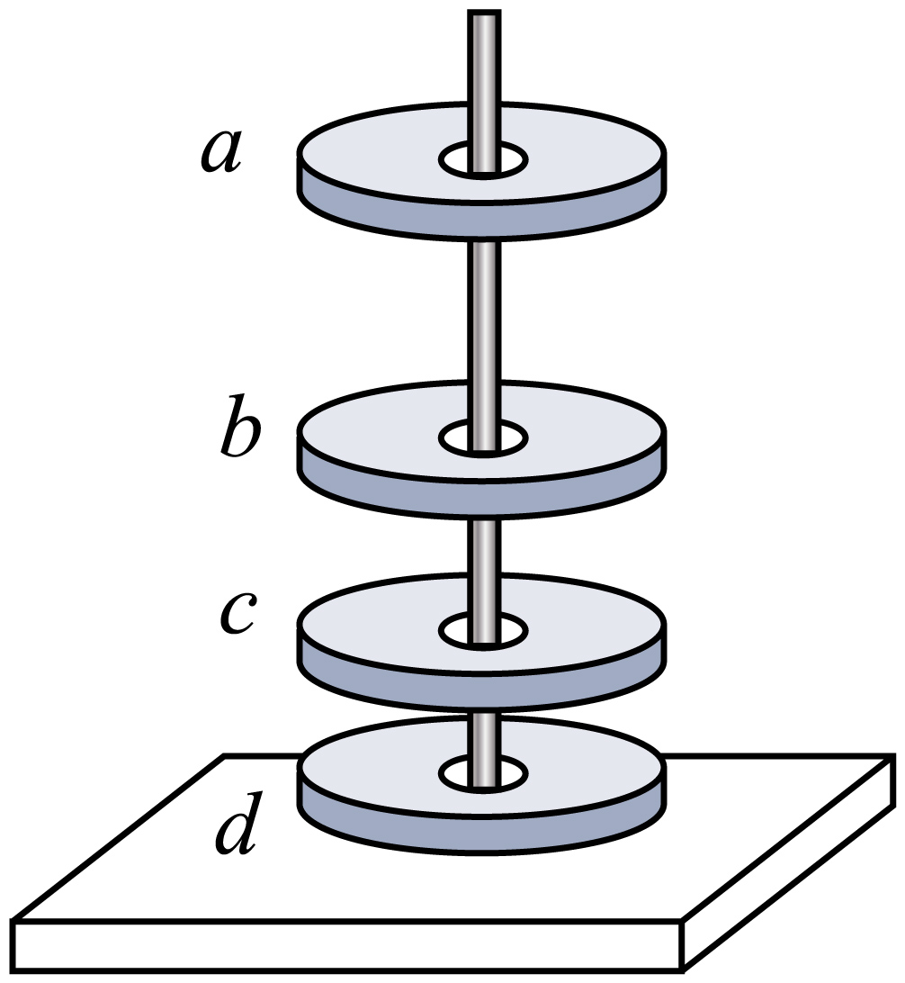 2.如图所示,四个完全相同的环形磁铁a、b、c、d套在塑料支架的光滑杆上,静止时磁铁a、b、c悬浮在空中,d压在塑料支架底板上,若每个磁铁受的重力均为G,则磁铁d对底板的压力是(  )